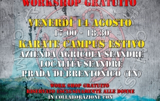 Venerdì 14 Agosto dalle ore 17.00 alle ore 18.30 : Workshop gratuito antiaggressione Femminile Presso Centro Vacanze Azienda a Seandre Prada di Brentonico (Trento) […]