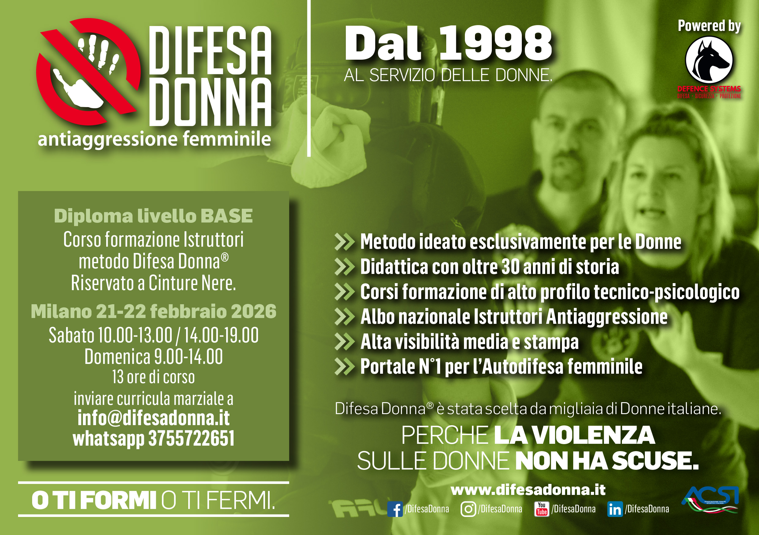 Un corso dura in media 14 ore. Esiste sia la formula a lezioni settimanali che quella full-immersion su due week end. Nel corso livello base si insegnano i principi di prevenzione, la difesa verbale e fisica contro un aggressore, sia in piedi che al suolo. Nel livello avanzato gli scenari si fanno più difficili: aggressione multipla, minaccia con arma da taglio. Ma si apprende anche l’uso di strumenti difensivi, come lo spray al peperoncino, e di armi occasionali (chiave, penna, ombrello).