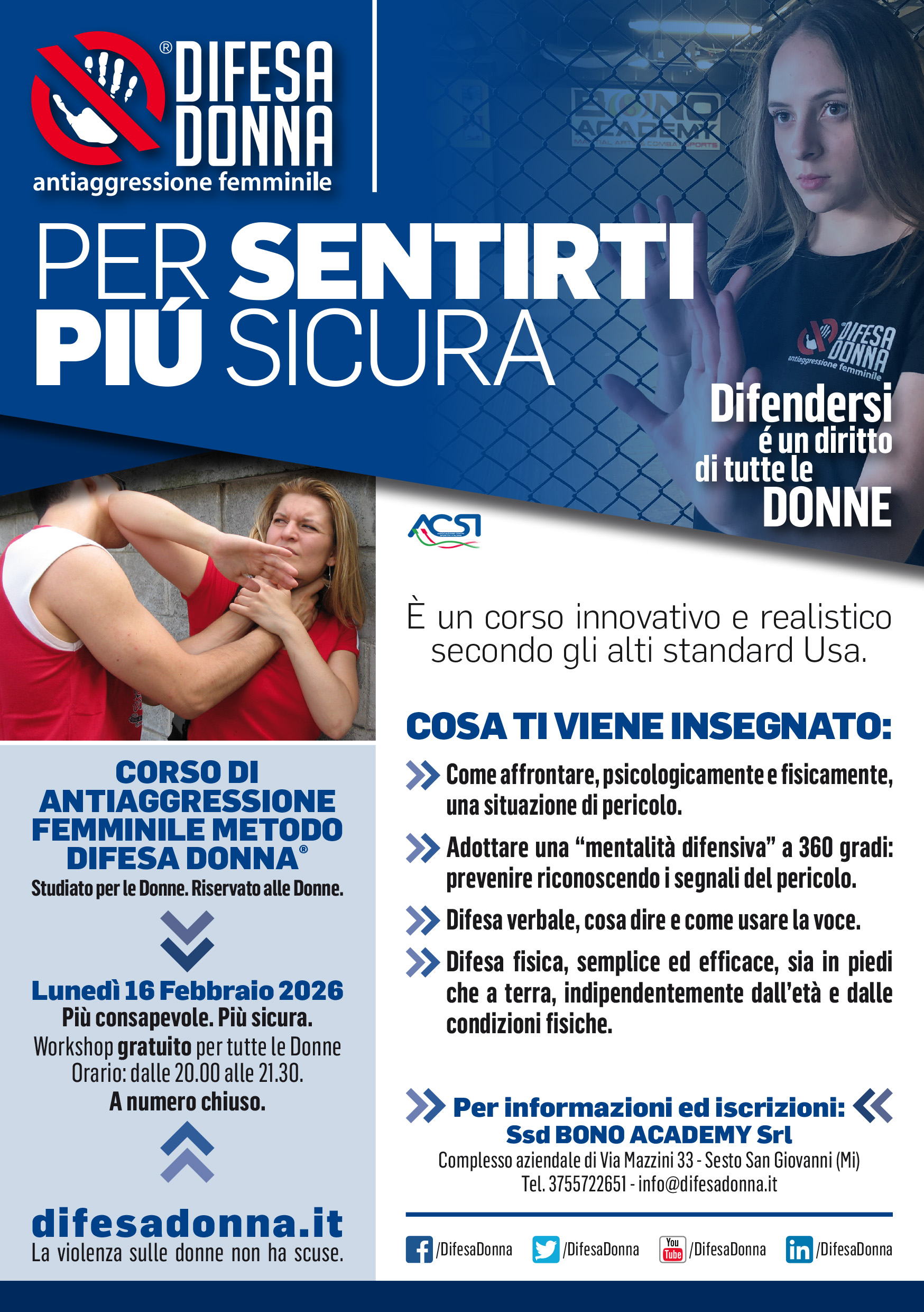 Certo. Il programma Difesa Donna è rivolto a tutte le donne, indipendentemente dalla preparazione sportiva o grado di allenamento. Non è un corso di arti marziali quindi non è necessario avere esperienze in questo settore.