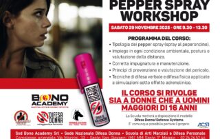 Sabato 29 Novembre ore 09.30-13.30 “Workshop sul Pepper-Spray” Scuola di Arti marziali e Difesa personale Ssd Bono Academy s.r.l. – Via Mazzini, 33 – 20099 Sesto San Giovanni (Milano). Aperto a tutti gli uomini e le donne, a partire dai 16 anni. […]