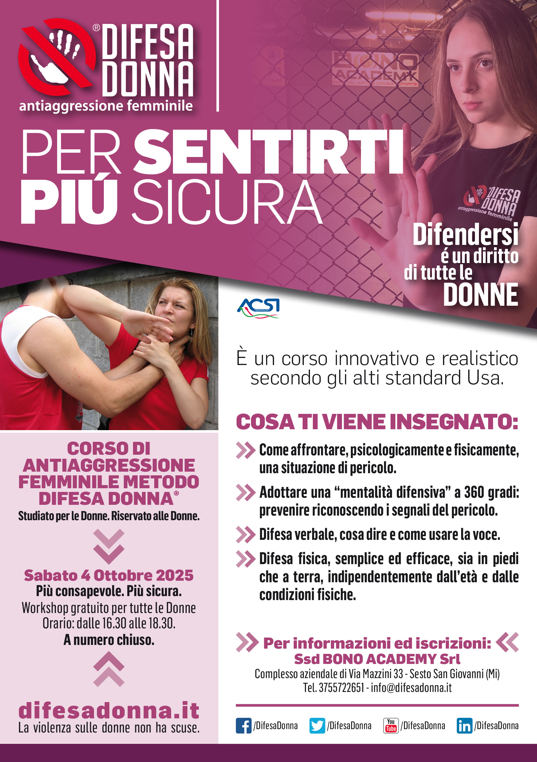 Bono Academy, sede nazionale Difesa Donna – Via Giuseppe Mazzini, 33 – Sesto San Giovanni (Milano)